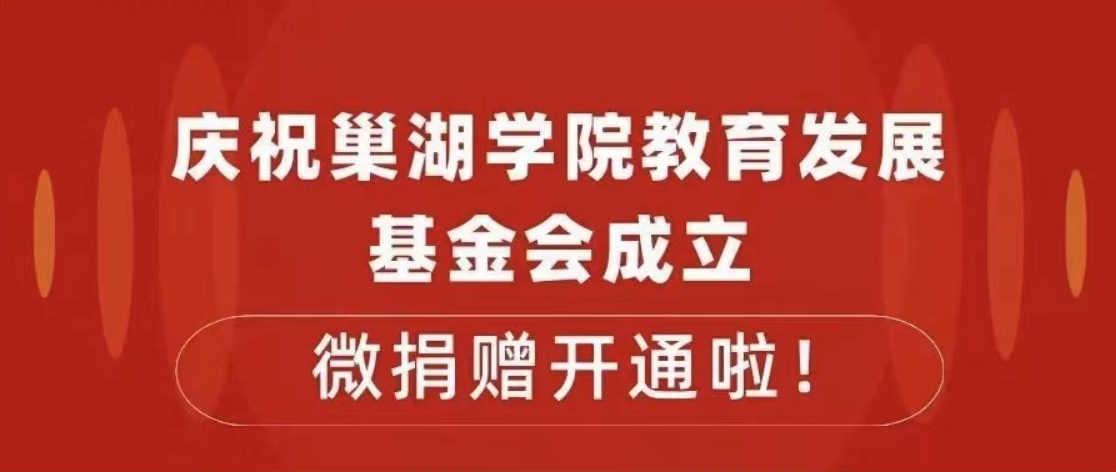 • 慶祝巢湖學院教育發(fā)展基金會成立,微捐贈開通啦!